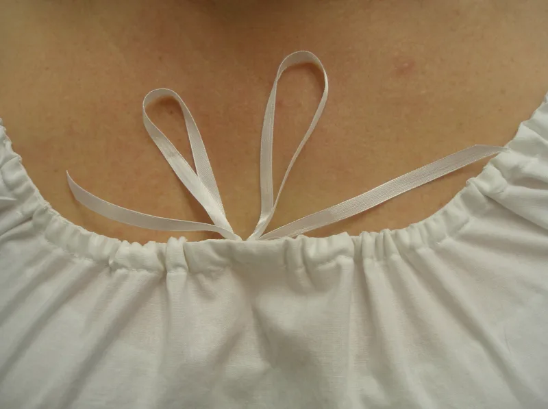 It has a ribbon drawstring through the neckline so it can be adjusted to wear under different necklines.